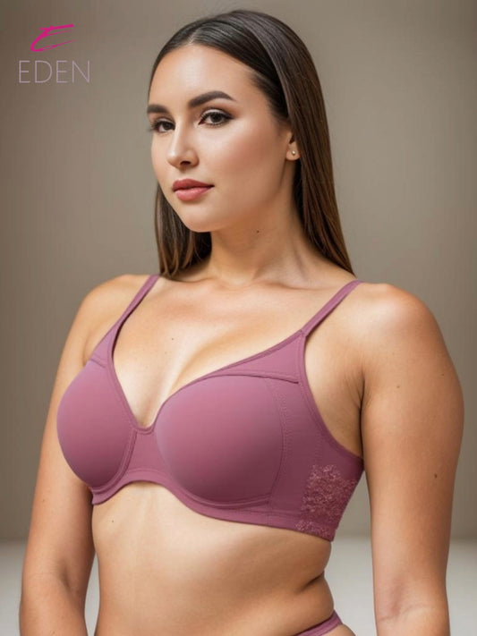 Wirefree Padded Plus Size Cotton Medium Coverage Tshirt Bra with Lace Styling Eden 109-peat