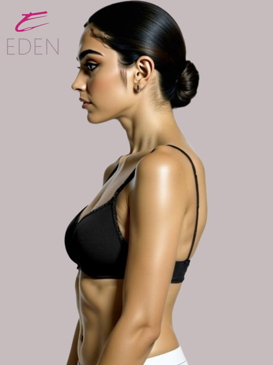 Padded Non-Wired Medium Coverage Soft Cups and Invisi Neckline polyamide T-Shirt Bra110-Black