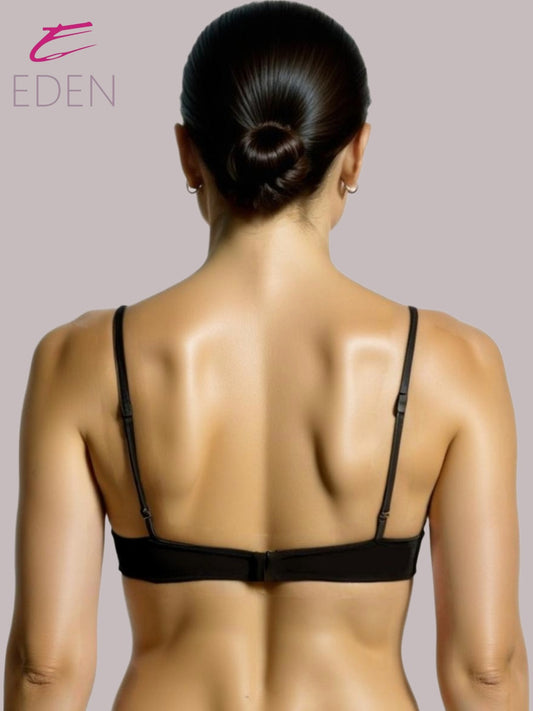 Padded Non-Wired Medium Coverage Soft Cups and Invisi Neckline polyamide T-Shirt Bra110-Black
